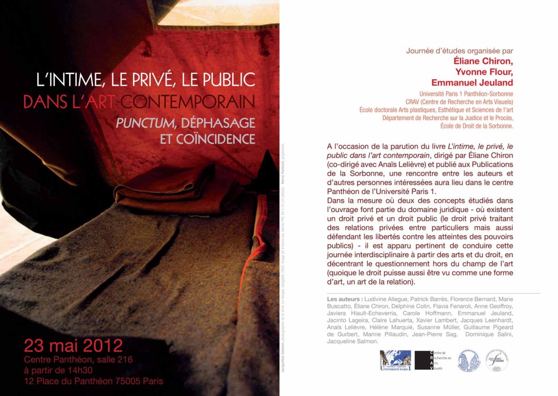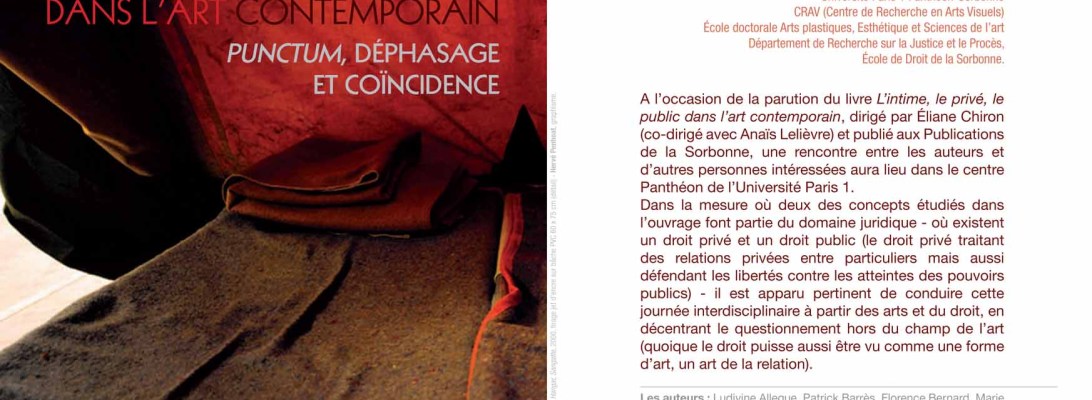 Parution de mon article “senso comune“, dans L’intime, le privé, le public dans l’art contemporain. E. Chiron, A. Lelièvre (Dir.). Paris. Publications de la Sorbonne, p.p. 165-173. ISBN 978-2-85944-700-7.